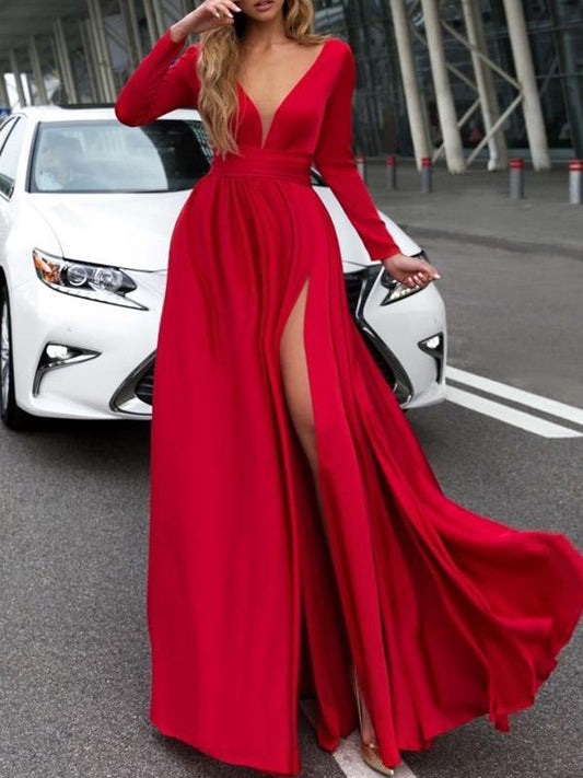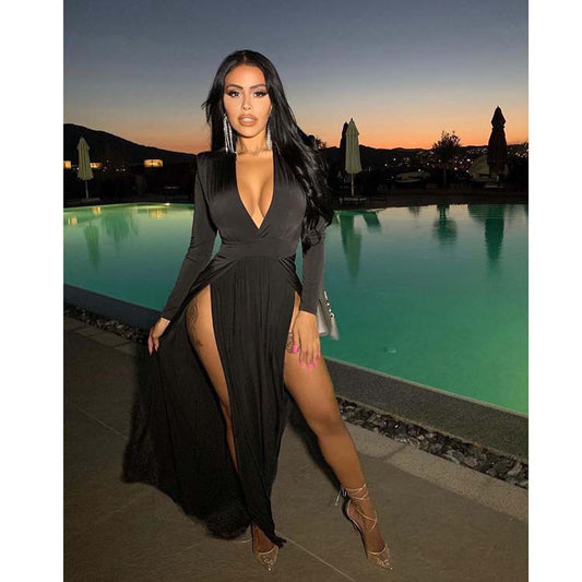Solid Double Slit Flowy Deep Vneck Long Sleeve Maternity Maxi DressRegular price $31.95 USDRegular priceUnit price per$0.00 USDSale price $31.95 USD