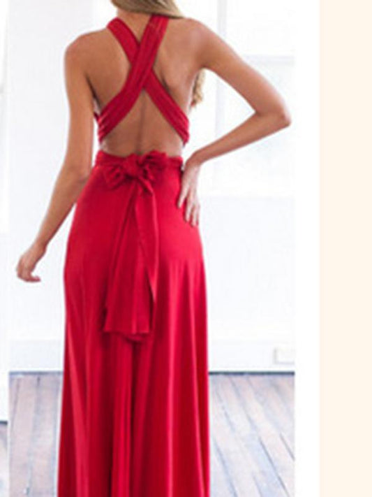Red Backless Lacing V-Neck Spaghetti Straps Women Maxi Dresses Elegant Dress Evening Dress