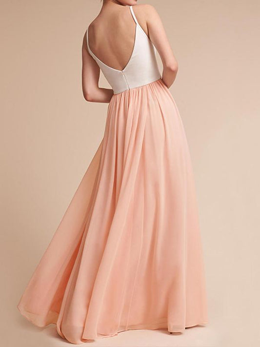 Patchwork Ruffles Draped V-Neck Spaghetti Straps A-Line Maxi Dress Women's Fashion Evening Dress