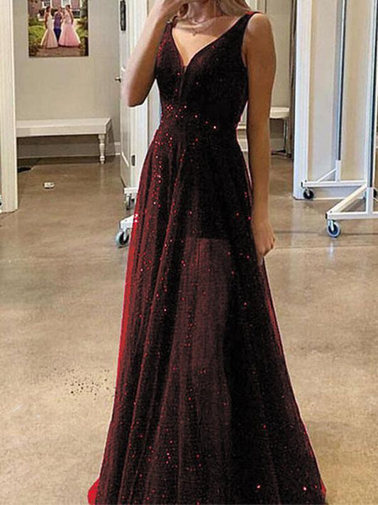 Solid Color Sequins Mesh V-Neck Spaghetti Straps Maxi Dresses Women Fashion Elegant Dress