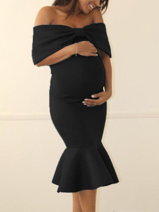 Seindeal Solid Color Off Shoulder Bodycon Baby Shower Dresses Maxi Mermaid Maternity Dress for Photoshoot