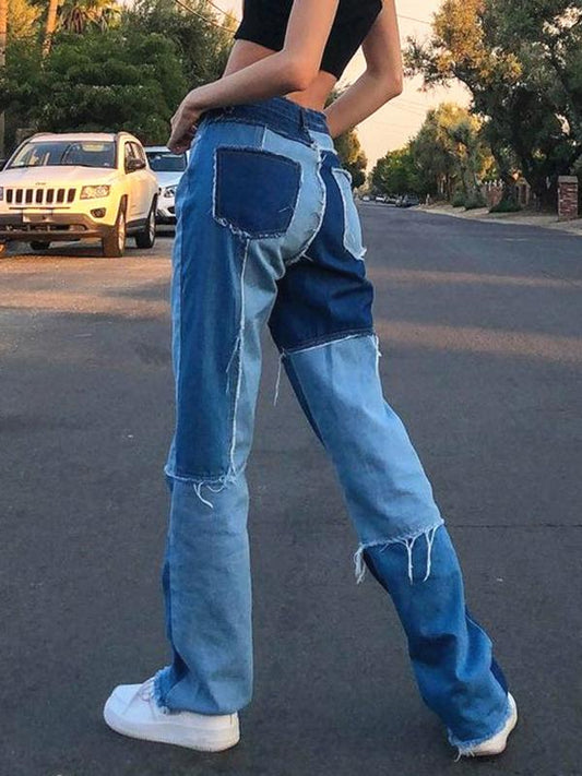Solid Color Pockets Long High Waist Oversize Women Fashion Jeans