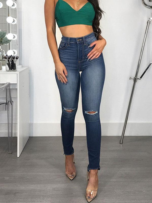 Pockets Destroyed Skinny Push Up Butt High Waist Women Jeans Boyfriend Jeans