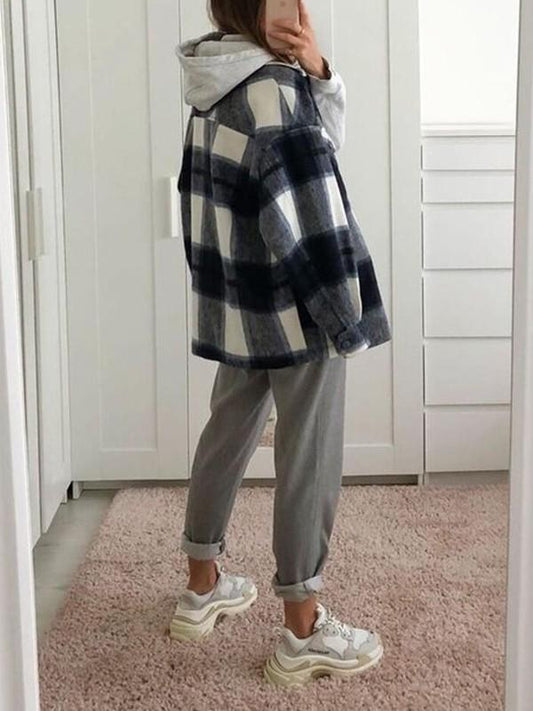 Seindeal Blue White Plaid Single Breasted Oversize Blouse Overshirt Shirt Jacket Lumberjack Jacket Flannel Shirt Jacket Women Fashion