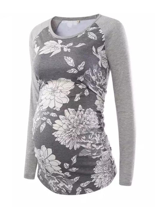 Seindeal Floral Print Fits Me Like A Glove Round Neck Casual Maternity T-Shirt