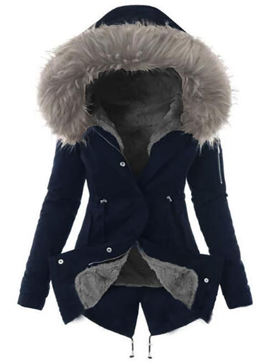 Patchwork Fur Drawstring Hoodie Long Sleeve Maternity Padded Coat