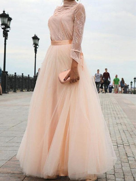 Seindeal Apricot Mesh High Waist Floor Length Maxi Skirt Elegant Party Evening Tutu Tulle Skirt Ball Skirt