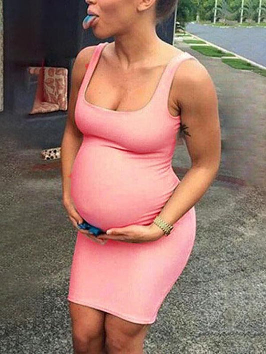 Spaghetti Strap U-neck Bodycon Maternity Casual Mini Dress