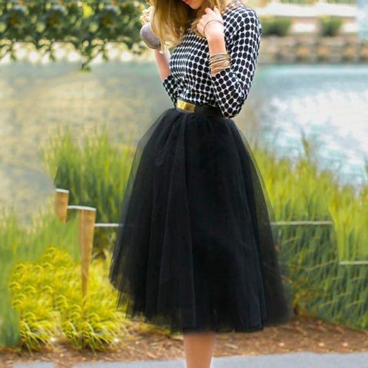 Seindeal Black Midi Plus Size Skirt Plain Pleated High Waisted Party Evening Tutu Tulle Skirt Dress