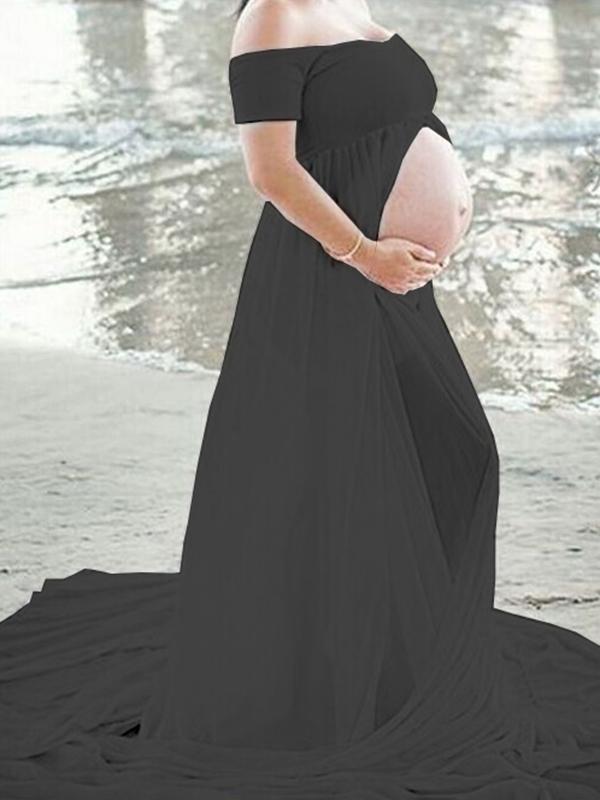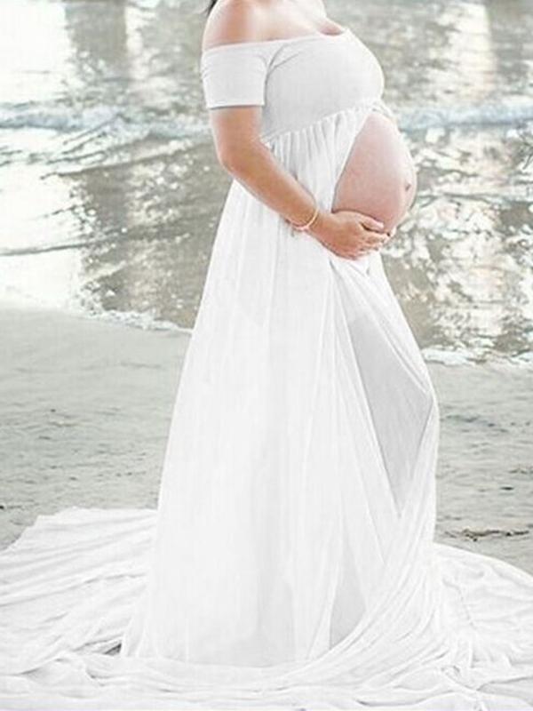 Front Slit Bandeau Off Shoulder Draped Maternity Maxi Dress