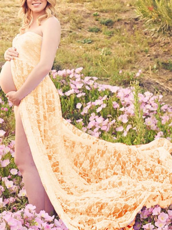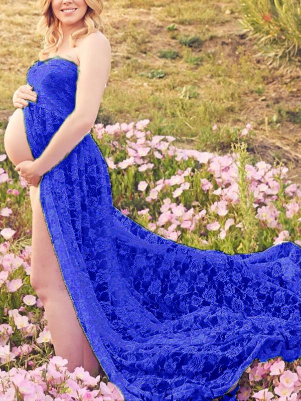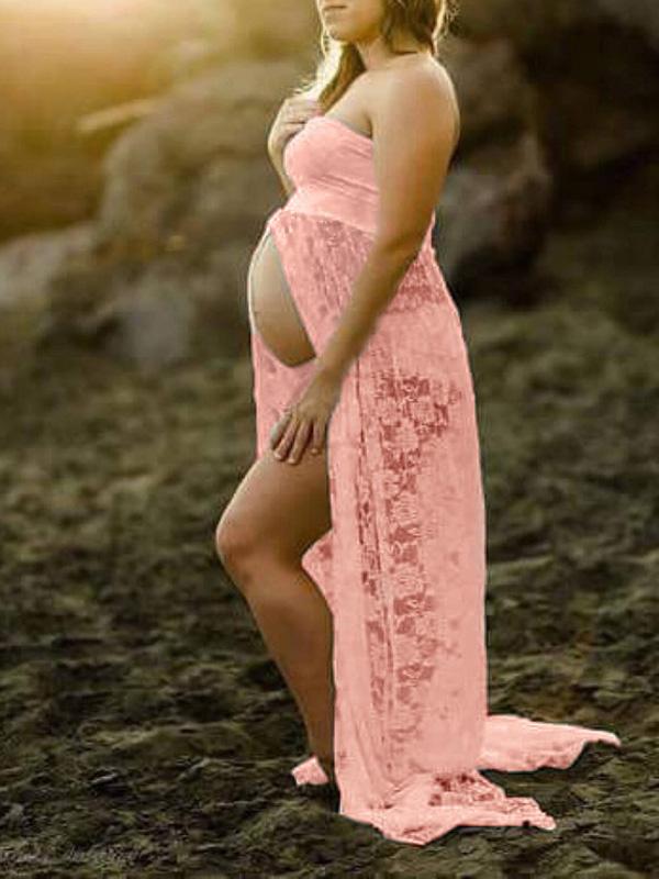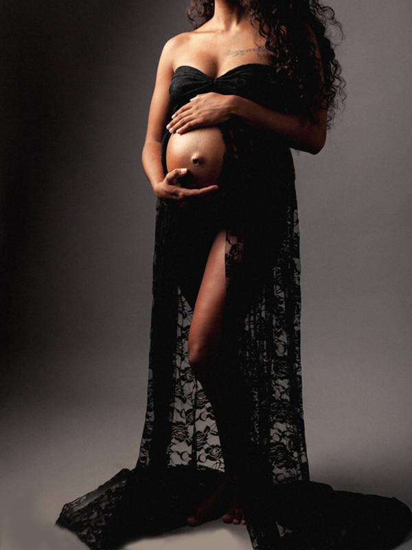 Lace Slit Bandeau Photoshoot Maternity Maxi DressHalloween