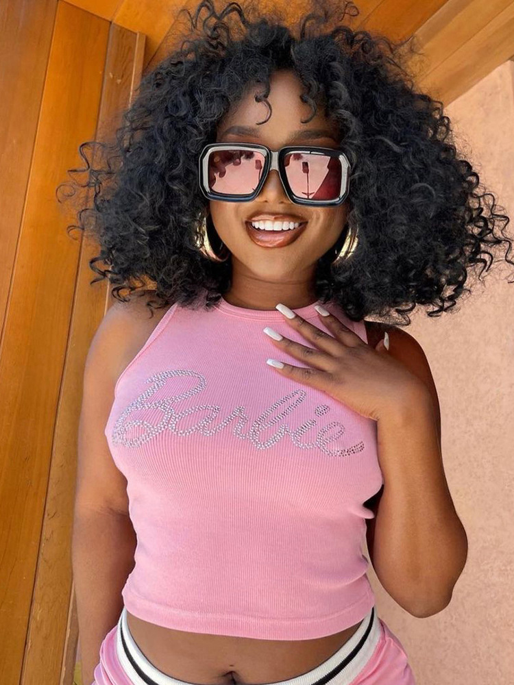 Cross Border Women's 2023 New Sleeveless Rhinestone Tank Top Pink