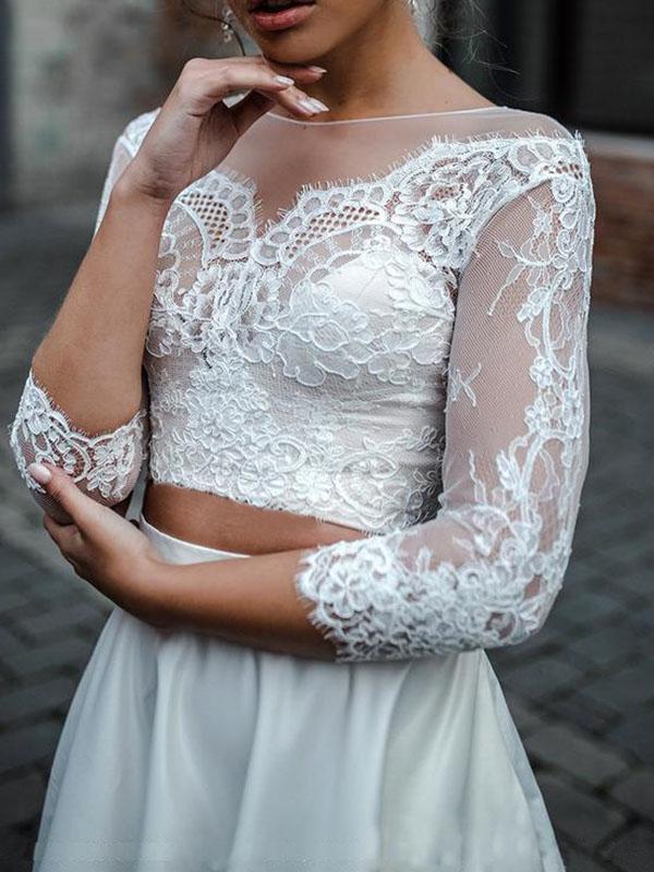 Lace Draped Two Piece Embroidery Round Neck Maxi Dress Women Fashion Evening Dresses Ball Gown