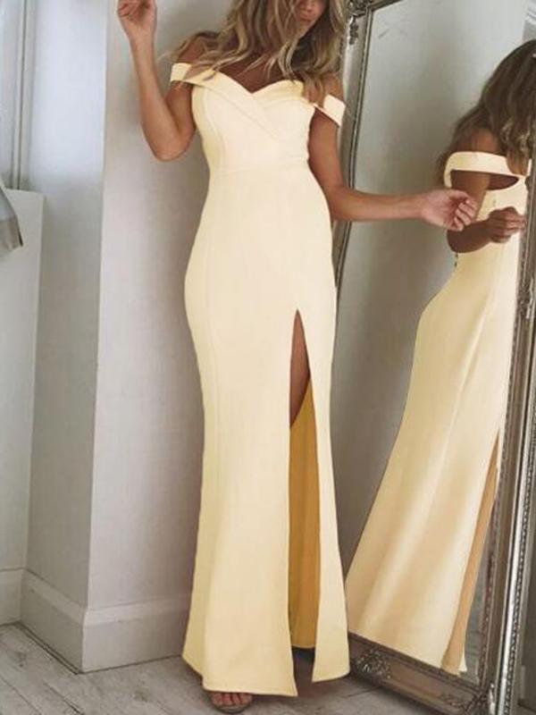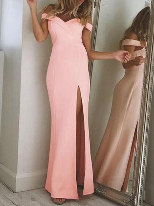 Off Shoulder Side Slit Party Maternity Maxi Dress