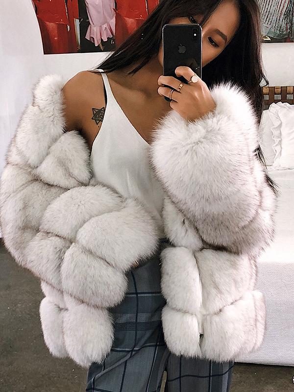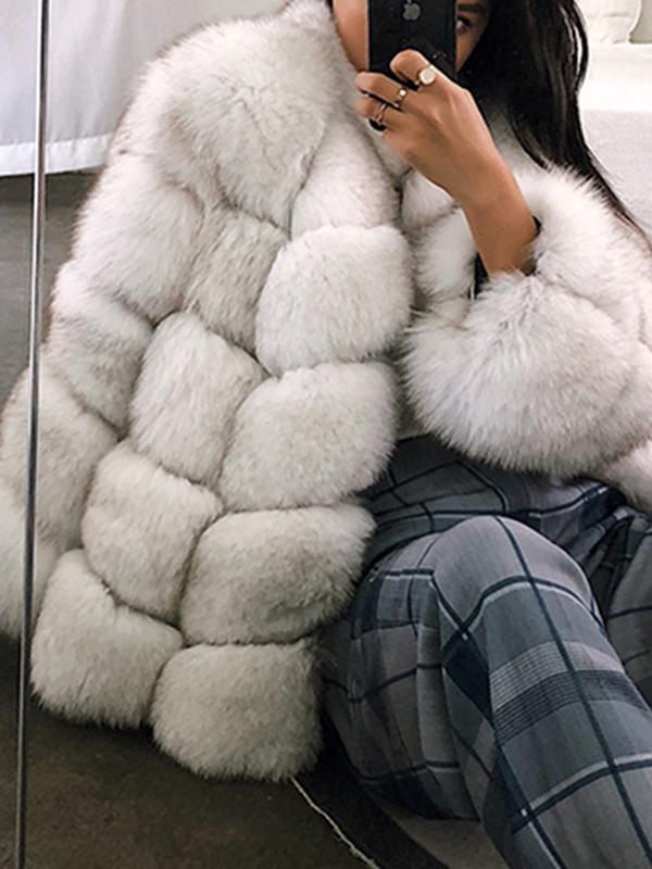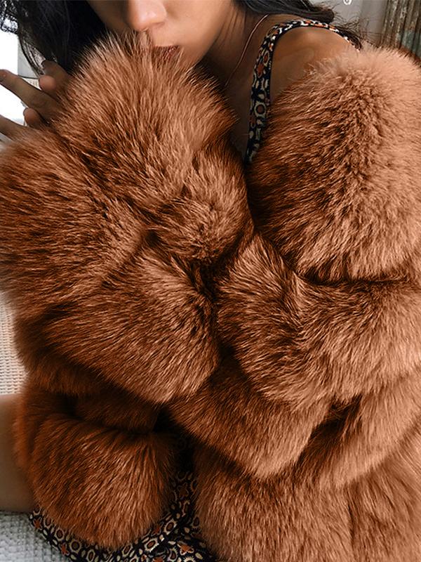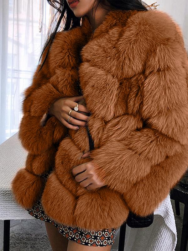Seindeal Faux Fur Solid Color Long Sleeve Chic Ladies Fashion
