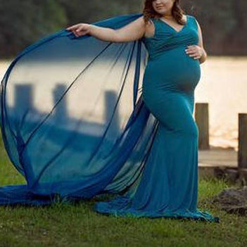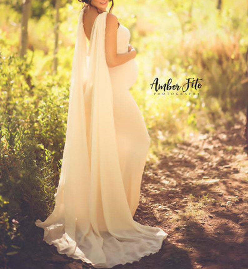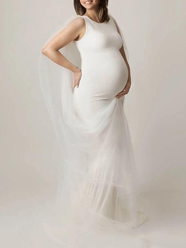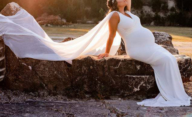 Seindeal Maxi Maternity Dress for Baby Shower Bodycon Mermaid Cloak White